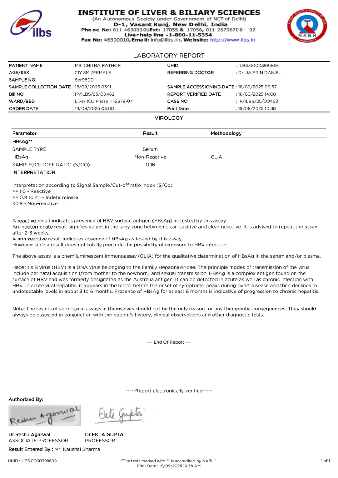 📍 Hospital Name: Institute of Liver and Biliary Sciences (ILBS)